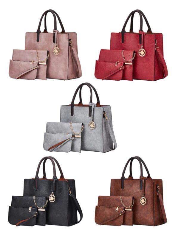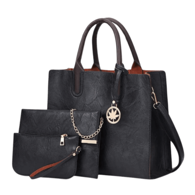 Ladies 3 in 1 Fashion Retro Pu Leather Tote Shoulder Bag Women's Lychee Printed Casual PU Leather 3 Pcs Set Messenger Handbags