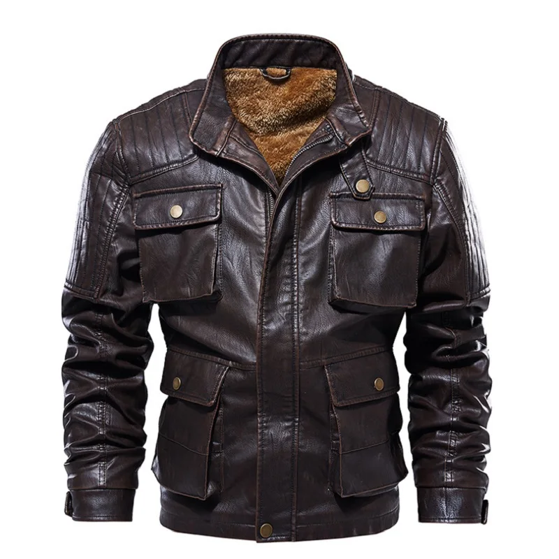 Mens Jackets Men's Winter Fashion Washed Motorcycle PU Leather Jacket Warm Coat Men Vintage Casual Leather Jacket Outerwear Male