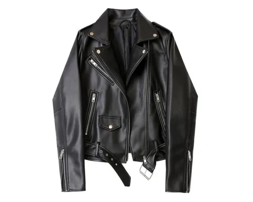 Ladies 2024 Spring & Autumn Belt Detachable Leather Jack