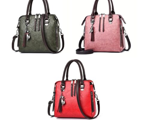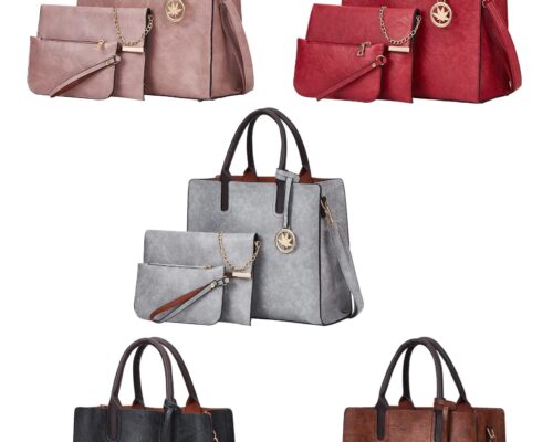 Ladies Fashion Retro Pu Leather Tote Shoulder Bag Women’s Lychee Printed 3 in 1