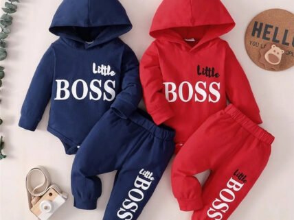 Newborn Baby Boy Clothes Letter print Long Sleeve Hoodie Romper + Pants 0-24 Months