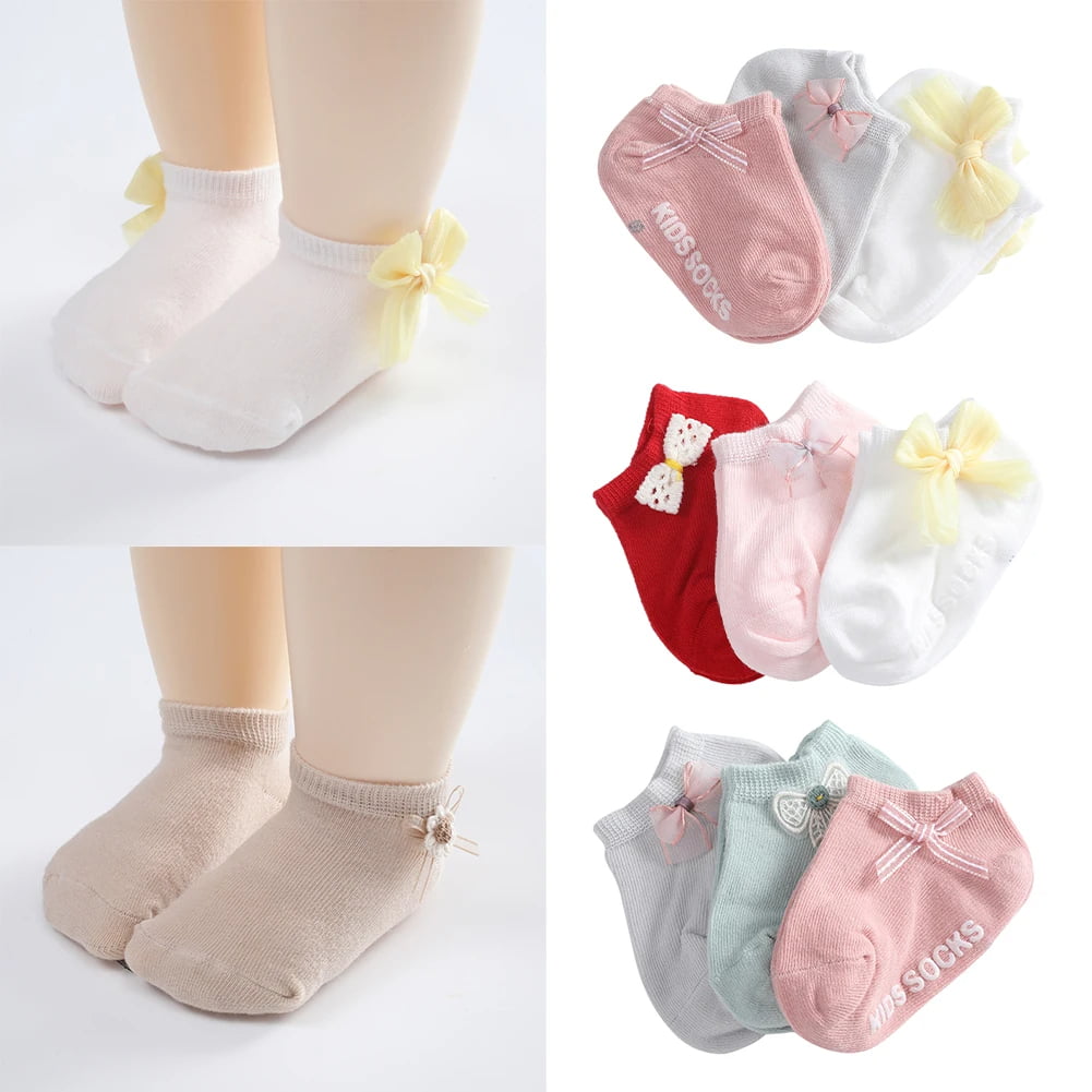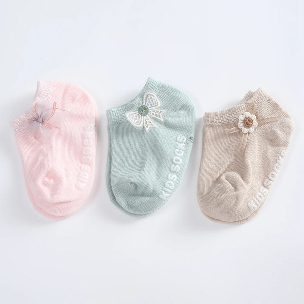 3 Pairs Of Baby Fashion Flower Cute Socks Princess Socks For 0-6 Y Four Seasons Casual Children Socks