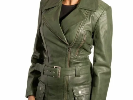 Women’s Coat Leather Jacket Winter Long Size Warm Green European and American Fashion
