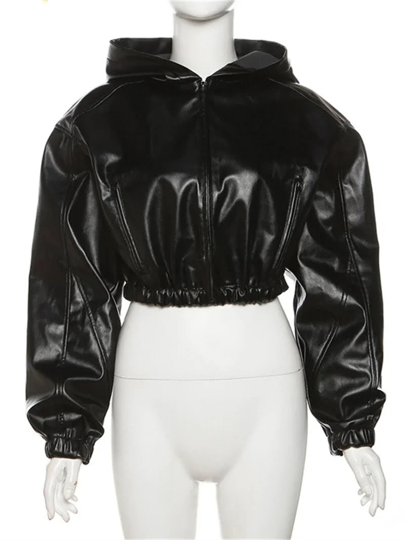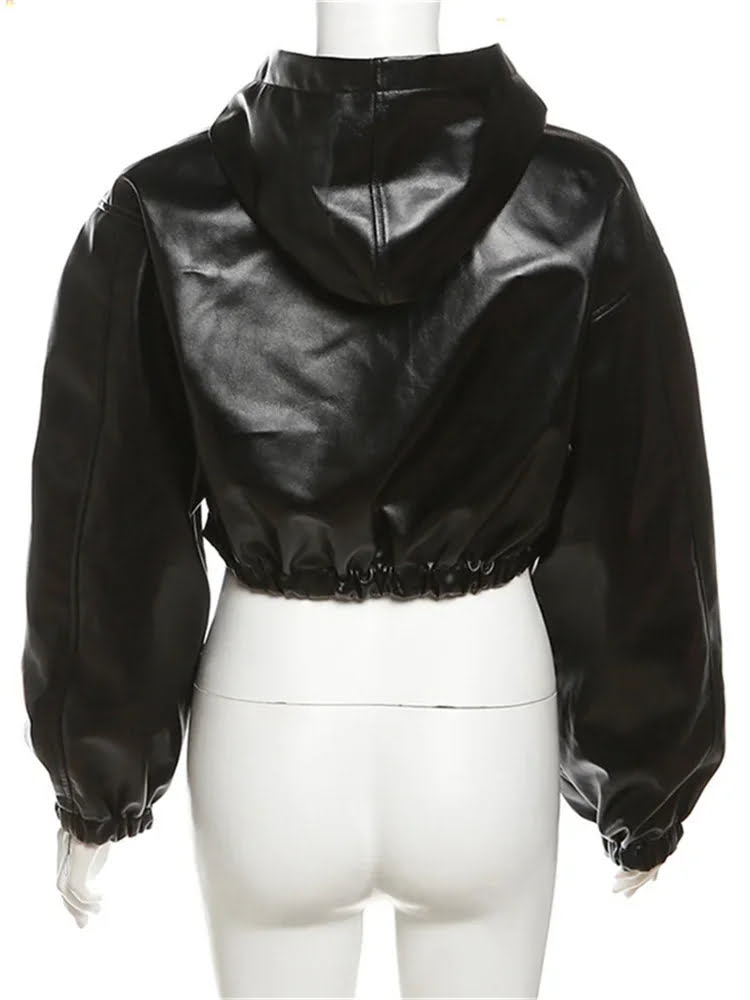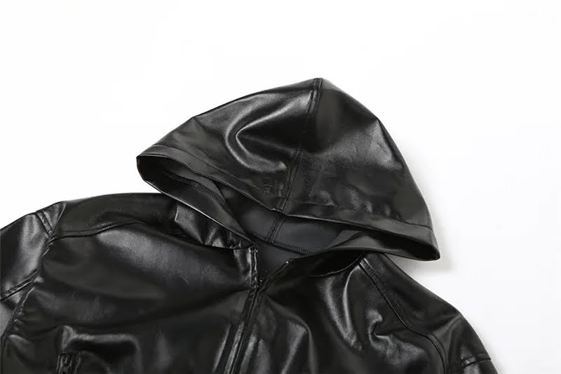 Leather Short Hooded Jacket Autumn Warm Long Sleeve Hipster Trend Coat