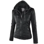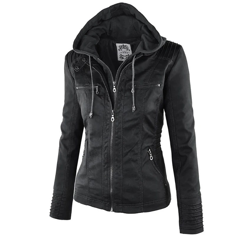 2024 New Women's Motorcycle Leather PU Hooded Leather Women's Washed Leather Jacket Coat Zipper Vintage Lapel Jacket