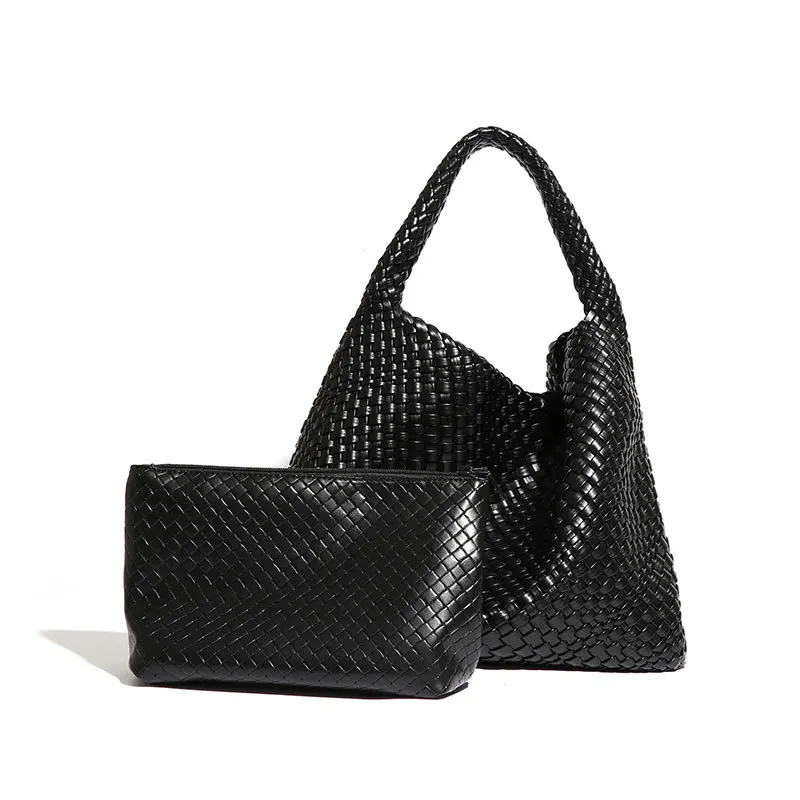 Women Bag Luxury PU Leather Handbag Lady Fashion Handmade Knitting Tote Female Hand-woven Basket Shoulder Bag with Purse